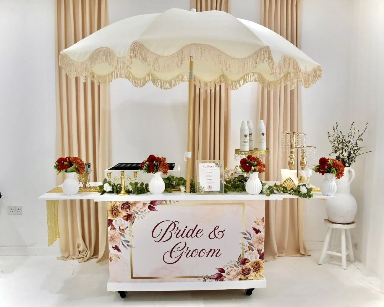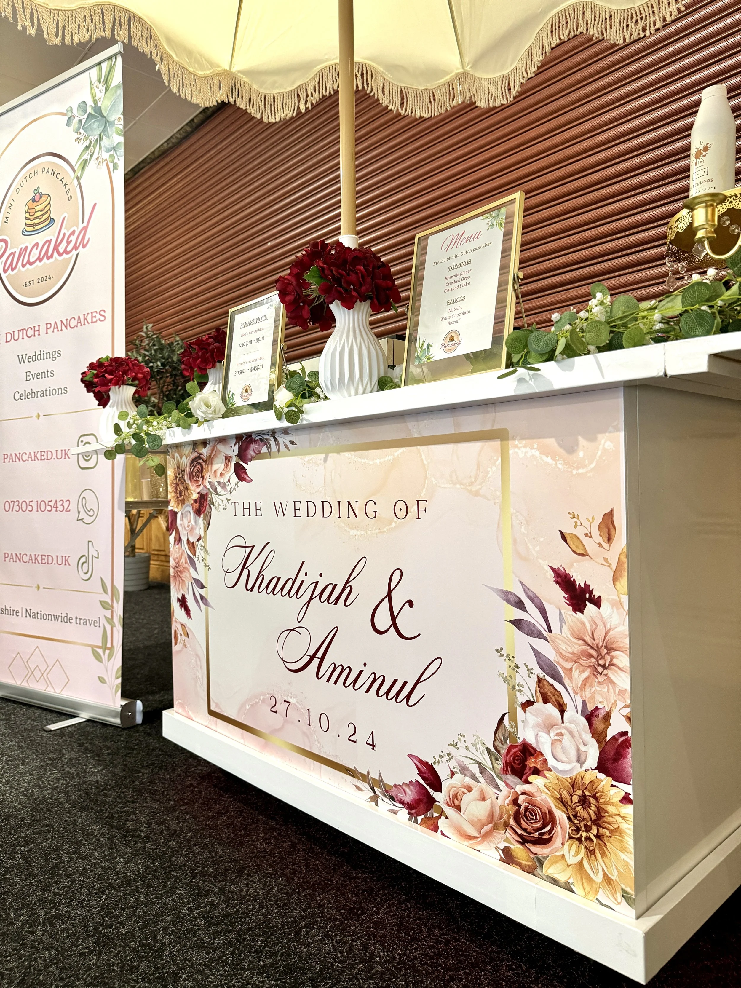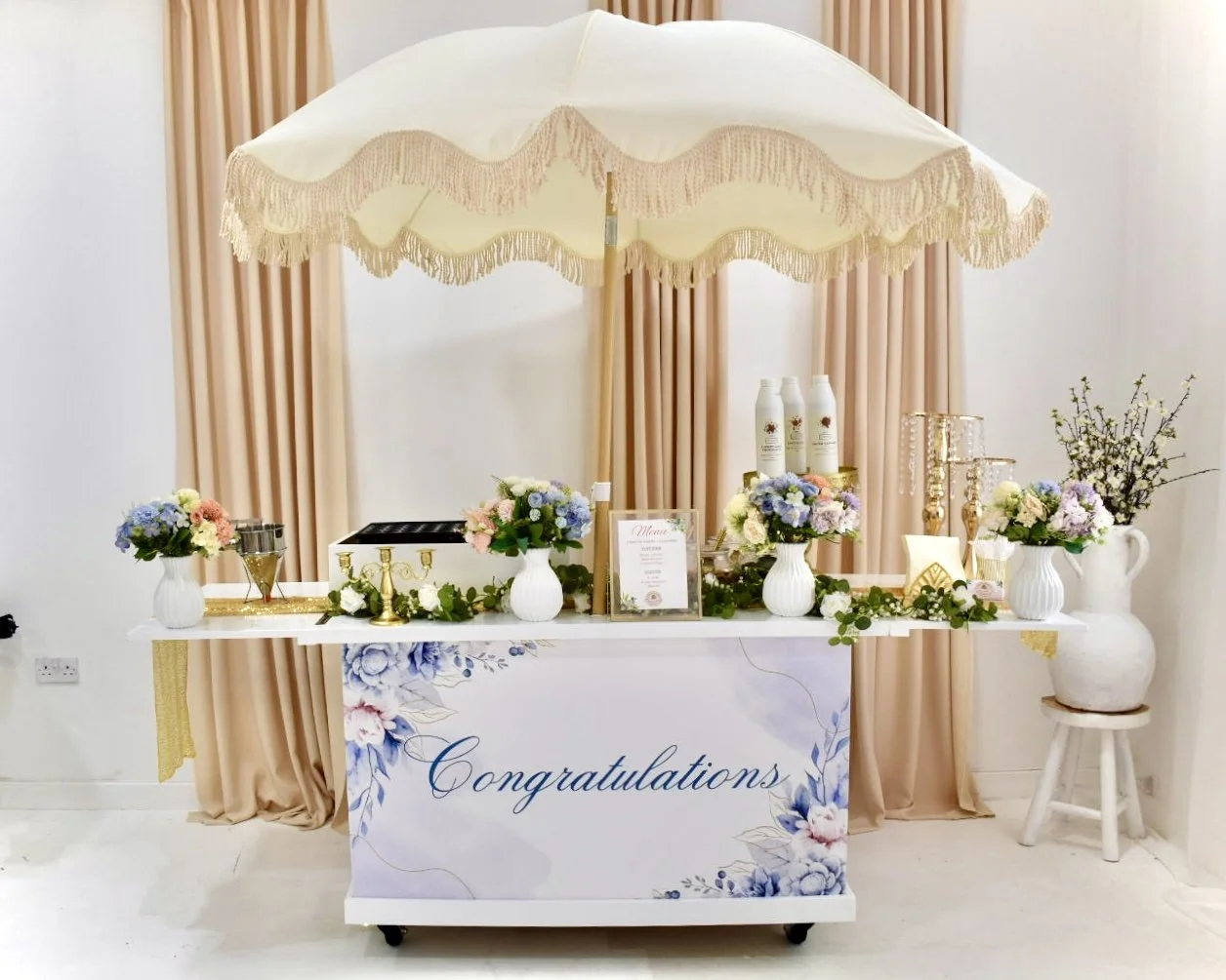 Our personalised cart fronts add an extra charm to your event! Designed by our talented in-house graphic designer, each cart is custom-tailored with your names, a meaningful message, or a unique design that matches your celebration. It’s a wonderful way to make your event stand out and feel truly one of a kind!