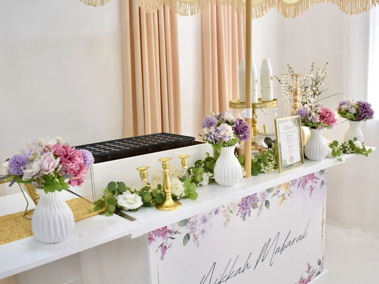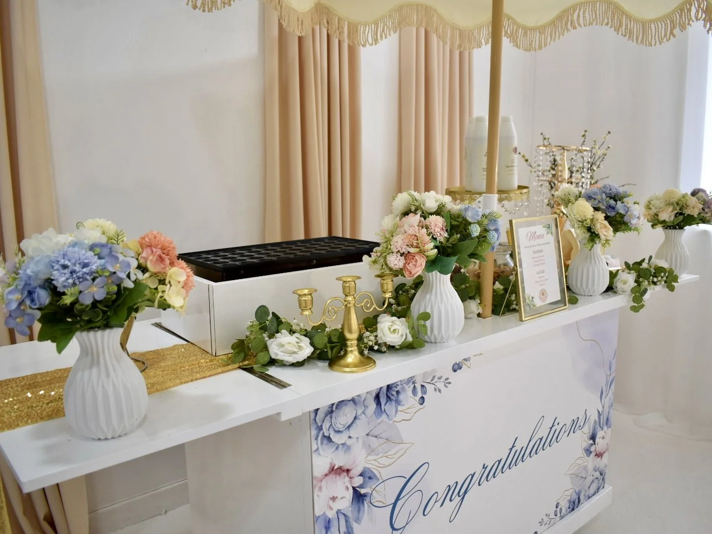 From soft pastels to bold hues, we’ll create a stunning arrangement that perfectly complements your celebration’s palette.
